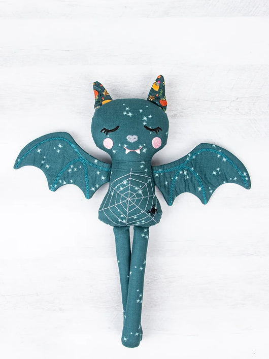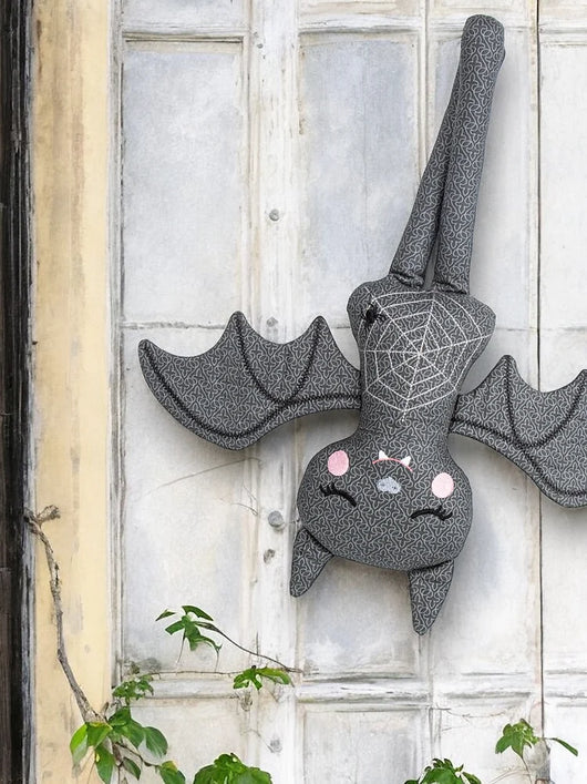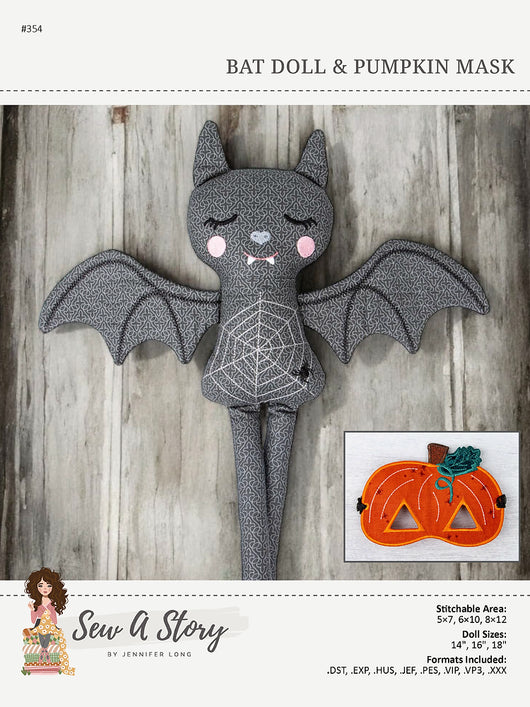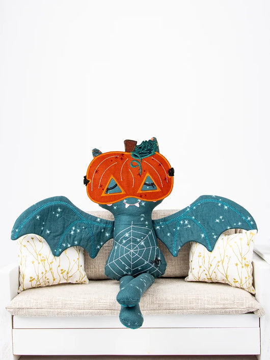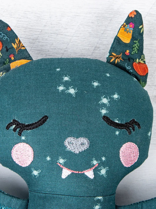 A bat has never been cuter than this friendly machine-embroidered doll! Assemble the bat doll, wings, ears, and mysterious pumpkin mask completely in-the-hoop.