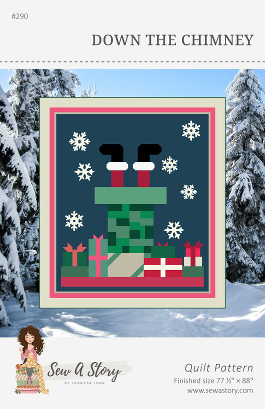 Celebrate the magic of the season with the Down the Chimney Quilt pattern by Jennifer Long of Sew A Story. This whimsical holiday design features Santa’s boots popping out of the chimney, surrounded by wrapped presents and snowflake appliqués. With its playful layout and storytelling style, this quilt brings joy and festive charm to any room. Finished quilt size: 77 ½" × 88"