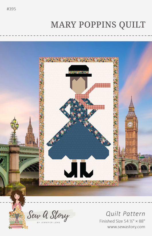 Celebrate one of the most iconic characters in children’s literature with the Mary Poppins Quilt pattern. Designed for parents, grandparents, and handmade gift-makers, this quilt features a bold silhouette and sweet pieced details. A perfect project for a child’s room or story-themed space. Finished size: 54½" x 88".