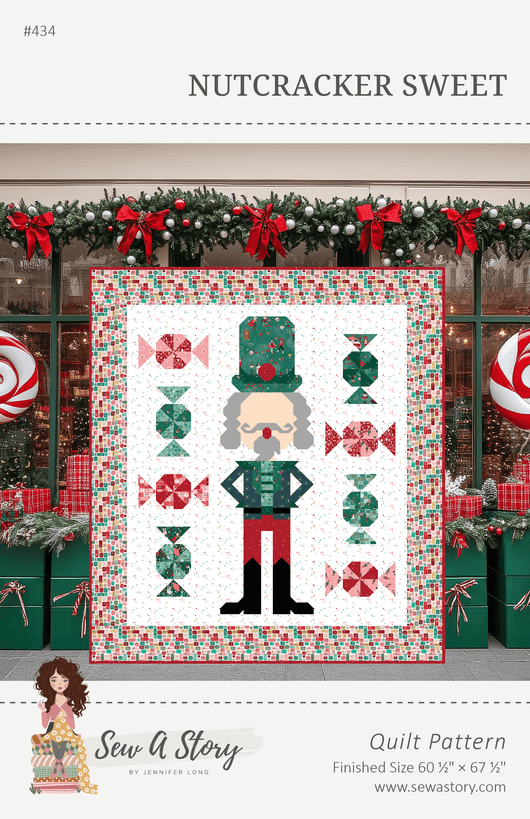 Create the delightful Nutcracker Sweet Quilt with this pattern. Designed for parents, grandparents, and handmade gift-makers, this quilt brings the joy and magic of the Nutcracker story to life in fabric. Finished size: 76" x 76".