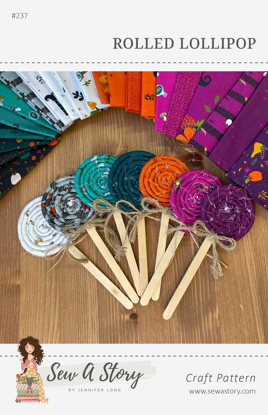 Stitch up guilt-free treats! These sweet lollipops are made with fabric scraps wrapped around cording and fashioned to a candy stick! You'll be addicted to making these candies to display during the Halloween season!