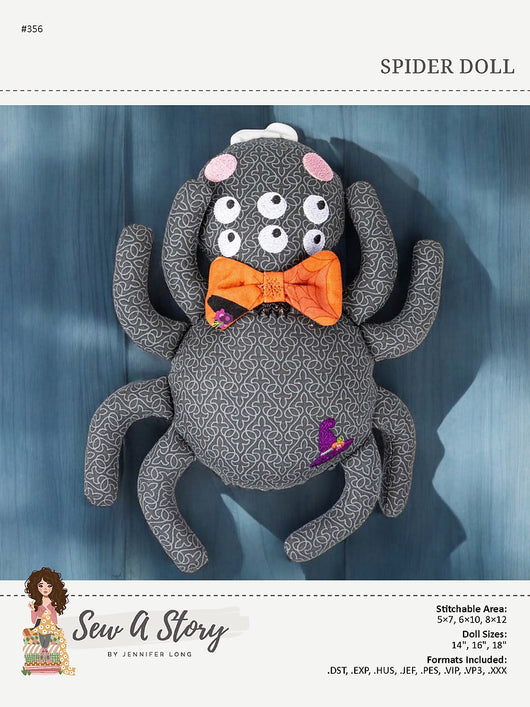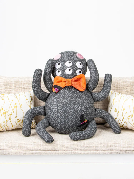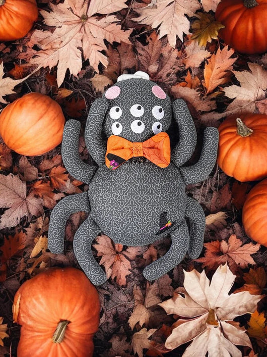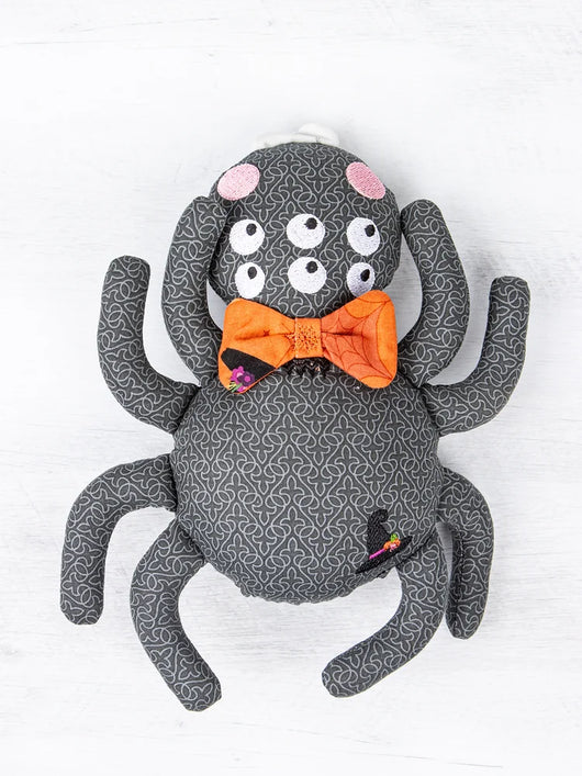 This crawly critter is anything buy creepy! This machine-embroidered spider doll is so sophisticated with its bowtie! Assemble this spider doll completely in-the-hoop.