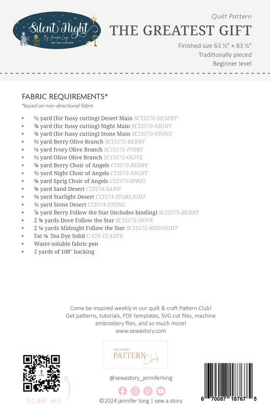 Shown here featuring prints from the Silent Night fabric by Jennifer Long for Riley Blake Designs.